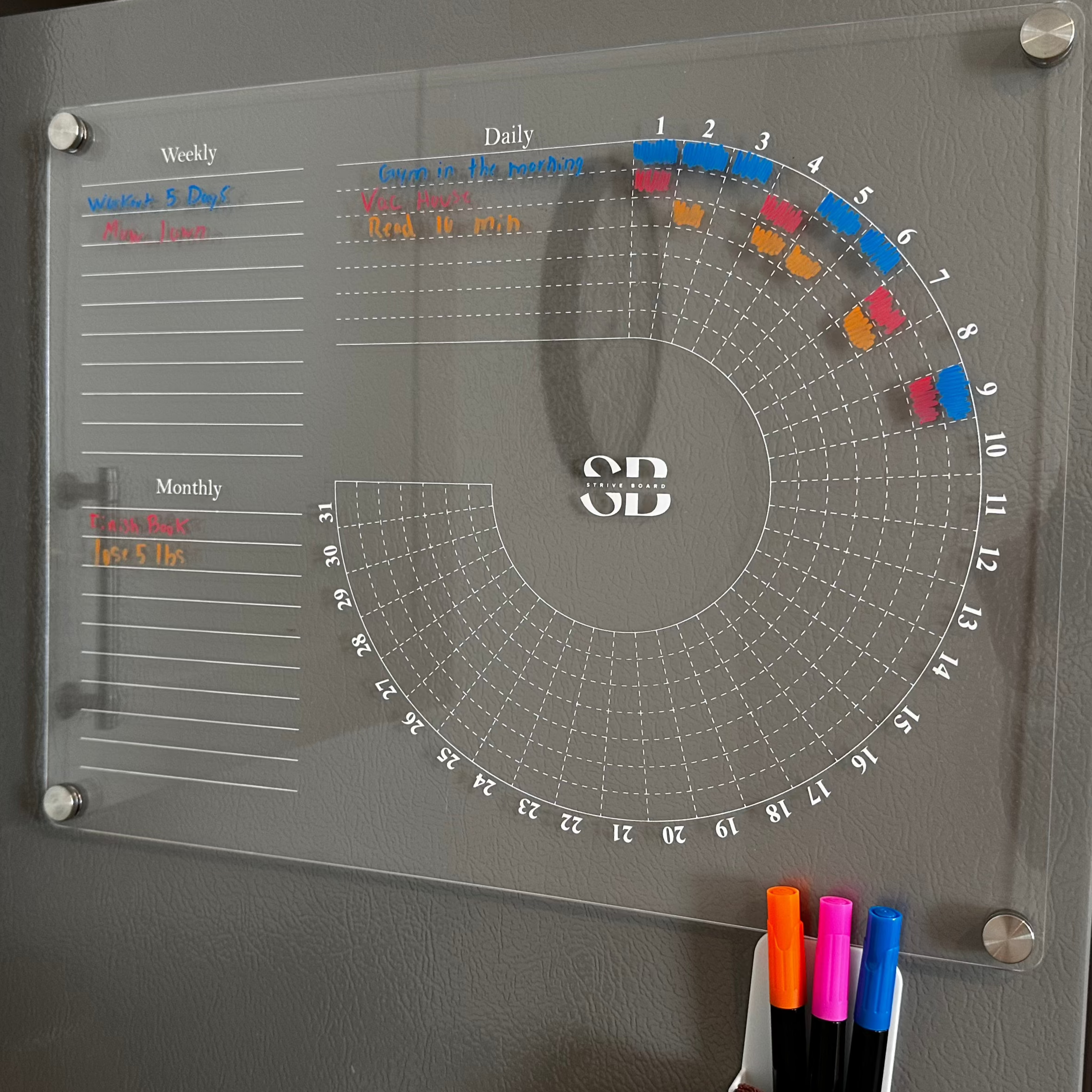 StriveBoard's Acrylic Calendar & Habit Tracker Set combines functionality, customization, and durability, making it the ideal tool for achieving your personal goals with style and ease.